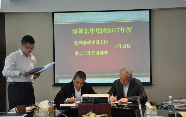 集團8個部門、6個子公司負責人分別與黨委書記、董事長王維星,黨委副書記、總經理王立新簽訂《2017年度黨風廉政建設工作責任書》和《2017年度重點工作任務責任書》。