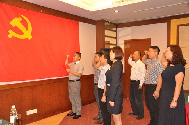 面對(duì)黨旗,公司近30名黨員干部、6名預(yù)備黨員宣讀誓詞:“我志愿加入中國(guó)共產(chǎn)黨,擁護(hù)黨的綱領(lǐng),遵守黨的章程……”。黨員們舉起右拳,在鮮紅的黨旗下莊嚴(yán)宣誓,立下自己對(duì)黨忠誠的誓言,表達(dá)了為黨的事業(yè)奮斗終身的決心和愿望。