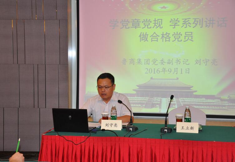 [導(dǎo)讀] 9月1日上午,省國資委“兩學(xué)一做”宣講會(huì)在公司舉行。省管企業(yè)宣講團(tuán)成員、魯商集團(tuán)黨委副書記劉守亮同志以《學(xué)黨章黨規(guī) 學(xué)系列講話 做合格黨員》為題作宣講報(bào)告,公司黨委副書記、總經(jīng)理王立新同志主持宣講會(huì)。