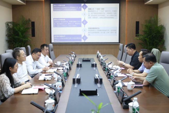 威海經(jīng)開區(qū)財政金融局副局長王少平,威海經(jīng)開區(qū)科技創(chuàng)新局引智科科長楊水鏡,深圳東華人力資源部、東華研究中心、東華園區(qū)運營公司有關(guān)人員參加會議。